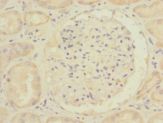 Immunohistochemistry of paraffin-embedded human kidney tissue using CSB-PA019684ESR2HU at dilution of 1:100