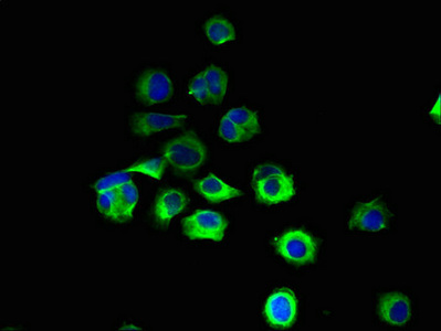 Immunofluorescent analysis of MCF-7 cells using CSB-PA019815LA01HU at dilution of 1:100 and Alexa Fluor 488-congugated AffiniPure Goat Anti-Rabbit IgG(H+L)