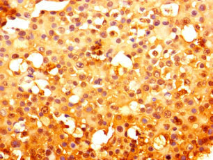 Immunohistochemistry of paraffin-embedded human breast cancer using CSB-PA019815LA01HU at dilution of 1:100