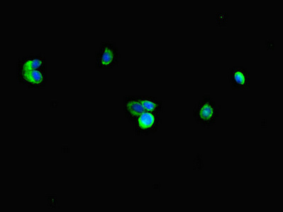 Immunofluorescent analysis of HepG2 cells using CSB-PA019889LA01HU at dilution of 1:100 and Alexa Fluor 488-congugated AffiniPure Goat Anti-Rabbit IgG(H+L)