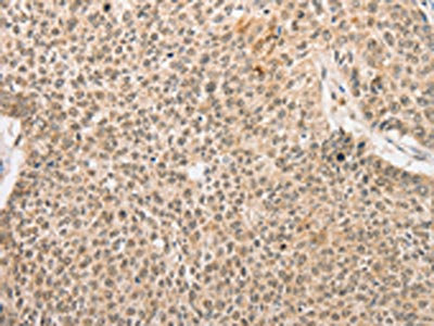 The image on the left is immunohistochemistry of paraffin-embedded Human colon cancer tissue using CSB-PA439706(RPL26L1 Antibody) at dilution 1/30, on the right is treated with fusion protein. (Original magnification: ×200)