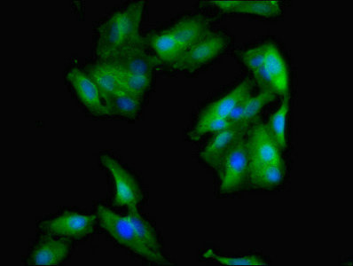 Immunofluorescent analysis of Hela cells using CSB-PA020336LA01HU at dilution of 1:100 and Alexa Fluor 488-congugated AffiniPure Goat Anti-Rabbit IgG(H+L)