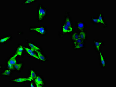 Immunofluorescent analysis of Hela cells using CSB-PA839774LA01HU at dilution of 1:100 and Alexa Fluor 488-congugated AffiniPure Goat Anti-Rabbit IgG(H+L)