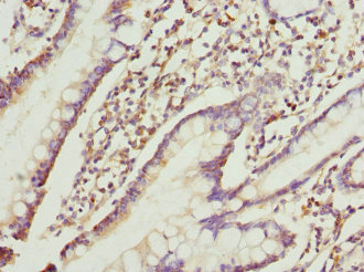 Immunohistochemistry of paraffin-embedded human small intestine tissue using CSB-PA867190ESR1HU at dilution of 1:100