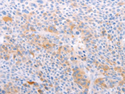 The image on the left is immunohistochemistry of paraffin-embedded Human liver cancer tissue using CSB-PA136242(S1PR4 Antibody) at dilution 1/40, on the right is treated with synthetic peptide. (Original magnification: ×200)