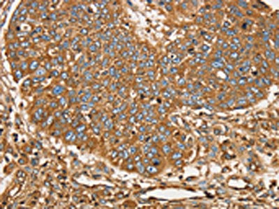 The image on the left is immunohistochemistry of paraffin-embedded Human lung cancer tissue using CSB-PA256001(SCD Antibody) at dilution 1/25, on the right is treated with synthetic peptide. (Original magnification: ×200)