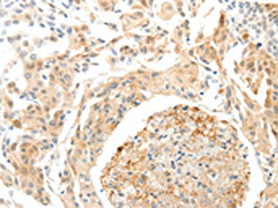 The image on the left is immunohistochemistry of paraffin-embedded Human cervical cancer tissue using CSB-PA940376(SEMA3D Antibody) at dilution 1/50, on the right is treated with synthetic peptide. (Original magnification: ×200)