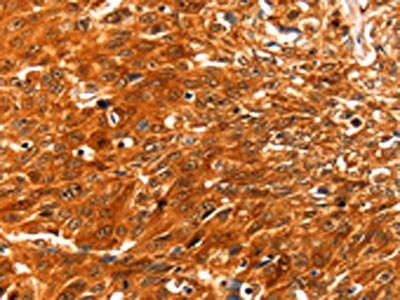 The image on the left is immunohistochemistry of paraffin-embedded Human esophagus cancer tissue using CSB-PA920298(SERPINB5 Antibody) at dilution 1/60, on the right is treated with fusion protein. (Original magnification: ×200)
