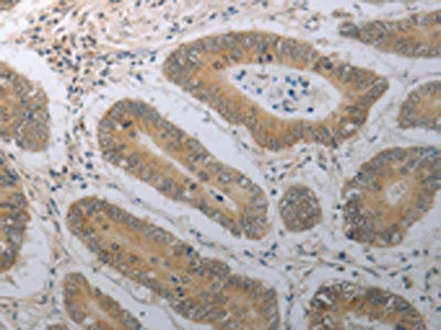 The image on the left is immunohistochemistry of paraffin-embedded Human colon cancer tissue using CSB-PA271756(SHH Antibody) at dilution 1/70, on the right is treated with synthetic peptide. (Original magnification: ×200)