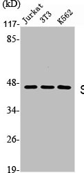 別名:CDK2/Cyclin A associated protein p45 antibody; Cyclin A/CDK2 associated protein p45 antibody; Cyclin-A/CDK2-associated protein p45 antibody; F box protein Skp2 antibody; F box/LRR repeat protein 1 antibody; F-box protein Skp2 antibody; F-box/LRR-repeat protein 1 antibody; FBL 1 antibody; FBL1 antibody; FBXL 1 antibody; FBXL1 antibody; FLB 1 antibody; FLB1 antibody; MGC1366 antibody; p45 antibody; p45skp2 antibody; S phase kinase associated protein 2 (p45) antibody; S phase kinase associated protein 2 antibody; S-phase kinase-associated protein 2 antibody; S-phase kinase-associated protein 2 E3 ubiquitin protein ligase antibody; SKP 2 antibody; Skp2 antibody; SKP2_HUMAN antibody