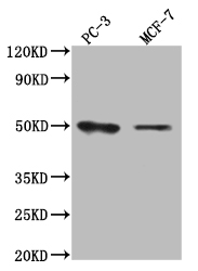Positive WB detected in: PC-3 whole cell lysate, MCF7 whole cell lysate