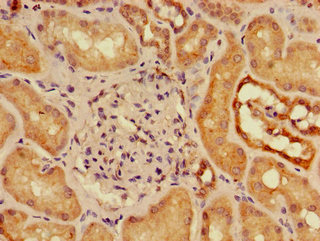 Immunohistochemistry of paraffin-embedded human kidney tissue using CSB-PA742402LA01HU at dilution of 1:100