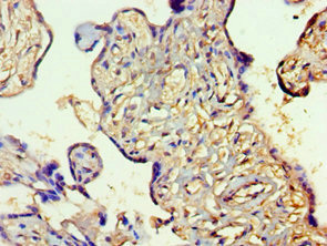 Immunohistochemistry of paraffin-embedded human placenta tissue using CSB-PA761274ESR1HU at dilution of 1:100