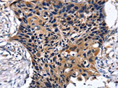 The image on the left is immunohistochemistry of paraffin-embedded Human esophagus cancer tissue using CSB-PA054783(SLC2A2 Antibody) at dilution 1/35, on the right is treated with synthetic peptide. (Original magnification: ×200)
