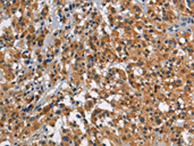 The image on the left is immunohistochemistry of paraffin-embedded Human gastric cancer tissue using CSB-PA948873(SMAD9 Antibody) at dilution 1/30, on the right is treated with synthetic peptide. (Original magnification: ×200)