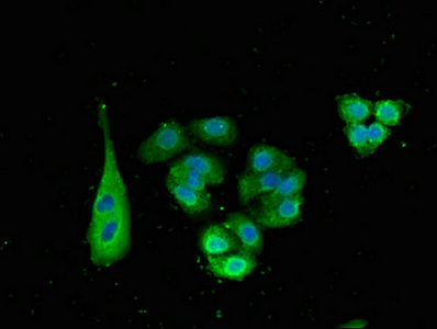 Immunofluorescent analysis of HepG2 cells using CSB-PA882091LA01HU at dilution of 1:100 and Alexa Fluor 488-congugated AffiniPure Goat Anti-Rabbit IgG(H+L)