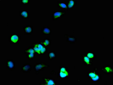 Immunofluorescent analysis of 293T cells using CSB-PA02864A0Rb at dilution of 1:100 and Alexa Fluor 488-congugated AffiniPure Goat Anti-Rabbit IgG(H+L)