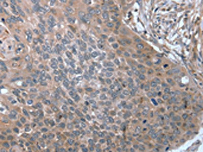 The image on the left is immunohistochemistry of paraffin-embedded Human esophagus cancer tissue using CSB-PA869737(SRGAP3 Antibody) at dilution 1/30, on the right is treated with fusion protein. (Original magnification: ×200)