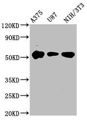 Positive WB detected in: A375 whole cell lysate, U87 whole cell lysate, NIH/3T3 whole cell lysate