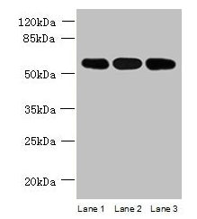 Predicted band size: 58, 51 kDa