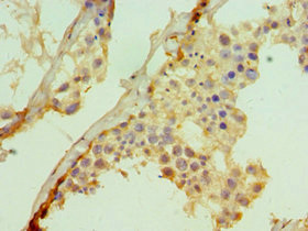 Immunohistochemistry of paraffin-embedded human testis tissue using CSB-PA891560ESR2HU at dilution of 1:100
