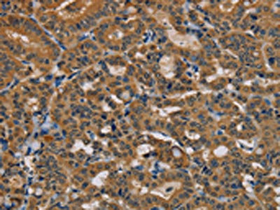 The image is immunohistochemistry of paraffin-embedded Human thyroid cancer tissue using CSB-PA910574(TAB3 Antibody) at dilution 1/35. (Original magnification: ×200)