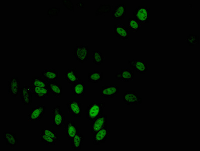 Immunofluorescent analysis of Hela cells using CSB-PA023234LA01HU at dilution of 1:100 and Alexa Fluor 488-congugated AffiniPure Goat Anti-Rabbit IgG(H+L)