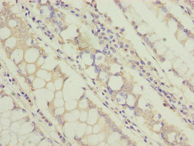 Immunohistochemistry of paraffin-embedded human colon cancer using CSB-PA023331LA01HU at dilution of 1:100
