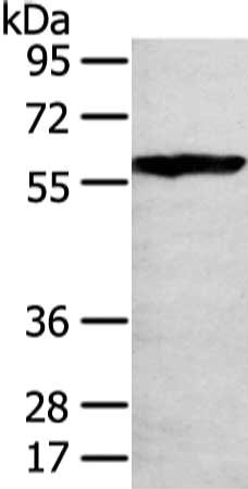 Gel: 8%SDS-PAGE, Lysate: 80 μg, Lane: 293T cell, Primary antibody: CSB-PA283261(THAP4 Antibody) at dilution 1/250 dilution, Secondary antibody: Goat anti rabbit IgG at 1/8000 dilution, Exposure time: 10 seconds
