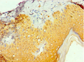 Immunohistochemistry of paraffin-embedded human skin tissue using CSB-PA023527DSR1HU at dilution of 1: 100