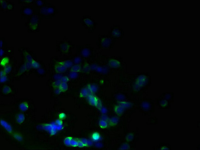Immunofluorescent analysis of 293T cells using CSB-PA023861LA01HU at dilution of 1:100 and Alexa Fluor 488-congugated AffiniPure Goat Anti-Rabbit IgG(H+L)