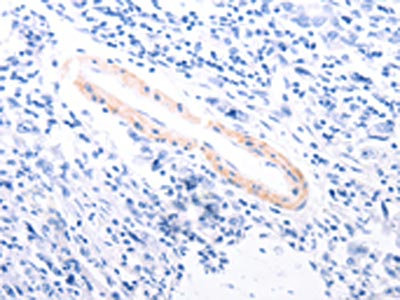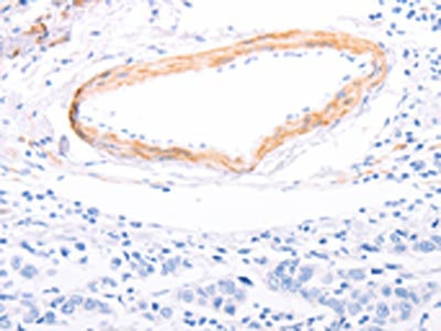 The image on the left is immunohistochemistry of paraffin-embedded Human gastric cancer tissue using CSB-PA171540(TPM1 Antibody) at dilution 1/80, on the right is treated with fusion protein. (Original magnification: ×200)