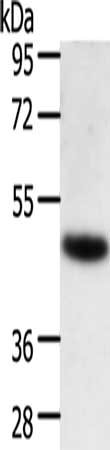 Gel: 10%SDS-PAGE, Lysate: 40 μg, Lane: Human lymphoma tissue, Primary antibody: CSB-PA445195(TRAF1 Antibody) at dilution 1/350, Secondary antibody: Goat anti rabbit IgG at 1/8000 dilution, Exposure time: 1 second