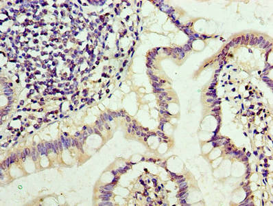 Immunohistochemistry of paraffin-embedded human small intestine tissue using CSB-PA024291LA01HU at dilution of 1:100