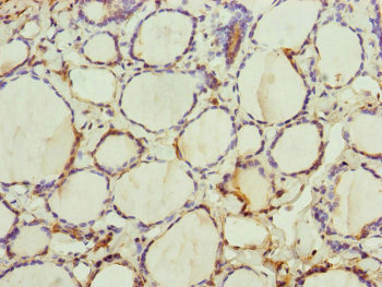 Immunohistochemistry of paraffin-embedded human thyroid tissue using CSB-PA024459ESR1HU at dilution of 1:100