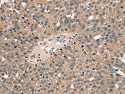 The image on the left is immunohistochemistry of paraffin-embedded Human liver cancer tissue using CSB-PA131097(TRIM3 Antibody) at dilution 1/40, on the right is treated with synthetic peptide. (Original magnification: ×200)