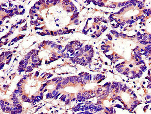 Immunohistochemistry of paraffin-embedded human colon cancer using CSB-PA09499A0Rb at dilution of 1:100
