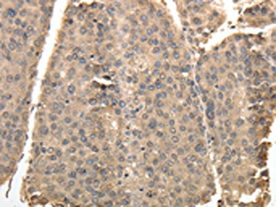 The image on the left is immunohistochemistry of paraffin-embedded Human liver cancer tissue using CSB-PA696260(TXN Antibody) at dilution 1/40, on the right is treated with synthetic peptide. (Original magnification: ×200)