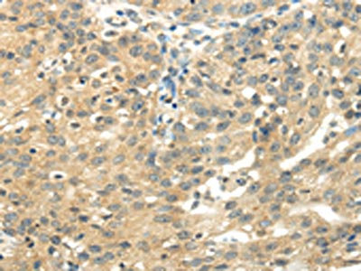 The image on the left is immunohistochemistry of paraffin-embedded Human liver cancer tissue using CSB-PA285591(UBAP2L Antibody) at dilution 1/25, on the right is treated with fusion protein. (Original magnification: ×200)