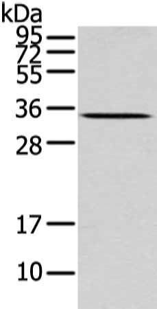 Gel: 8%SDS-PAGE, Lysate: 60 μg, Lane: Mouse liver tissue, Primary antibody: CSB-PA299698(UCP2 Antibody) at dilution 1/200 dilution, Secondary antibody: Goat anti rabbit IgG at 1/8000 dilution, Exposure time: 2 minutes