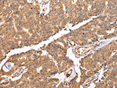 The image on the left is immunohistochemistry of paraffin-embedded Human prostate cancer tissue using CSB-PA923366(UQCRC2 Antibody) at dilution 1/25, on the right is treated with fusion protein. (Original magnification: ×200)