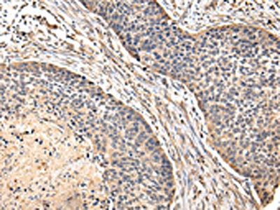 The image on the left is immunohistochemistry of paraffin-embedded Human esophagus cancer tissue using CSB-PA949950(VIP Antibody) at dilution 1/20, on the right is treated with fusion protein. (Original magnification: ×200)