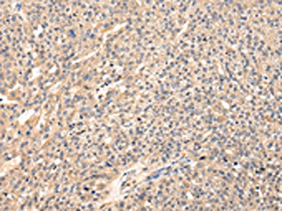 The image on the left is immunohistochemistry of paraffin-embedded Human breast cancer tissue using CSB-PA949950(VIP Antibody) at dilution 1/20, on the right is treated with fusion protein. (Original magnification: ×200)