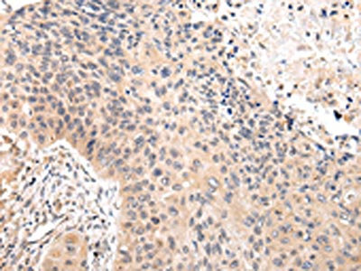 The image on the left is immunohistochemistry of paraffin-embedded Human esophagus cancer tissue using CSB-PA246201(VPS33A Antibody) at dilution 1/30, on the right is treated with fusion protein. (Original magnification: ×200)