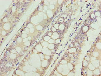 Immunohistochemistry of paraffin-embedded human colon cancer using CSB-PA882092LA01HU at dilution of 1:100