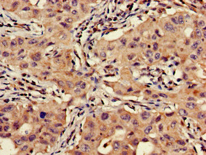 Immunohistochemistry of paraffin-embedded human lung cancer using CSB-PA842635LA01HU at dilution of 1:100