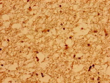 Immunohistochemistry of paraffin-embedded human brain tissue using CSB-PA528516LA01HU at dilution of 1:100