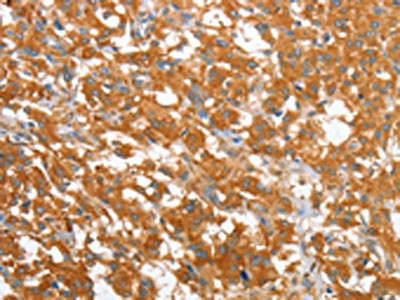 The image on the left is immunohistochemistry of paraffin-embedded Human gastric cancer tissue using CSB-PA560286(WNT3A Antibody) at dilution 1/40, on the right is treated with fusion protein. (Original magnification: ×200)