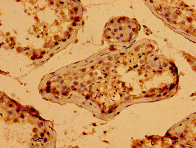 Immunohistochemistry of paraffin-embedded human testis tissue using CSB-PA734879LA01HU at dilution of 1:100
