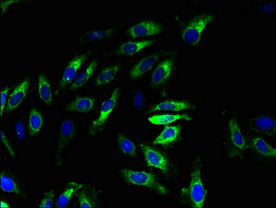 Immunofluorescent analysis of Hela cells using CSB-PA871381LA01HU at dilution of 1:100 and Alexa Fluor 488-congugated AffiniPure Goat Anti-Rabbit IgG(H+L)